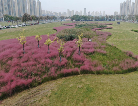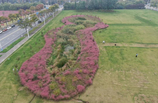 在中央商區(qū),成片的粉黛亂子草正值最佳觀賞期,云霧般的粉色花穗在陽光下輕盈搖曳,已成為市民爭(zhēng)相打卡的“網(wǎng)紅”景點(diǎn)。“粉黛亂子草觀賞性雖高,養(yǎng)護(hù)卻需格外精心。”建發(fā)公司相關(guān)負(fù)責(zé)人介紹,為維持其最佳觀賞狀態(tài),園區(qū)采取了分區(qū)、分時(shí)的精細(xì)化養(yǎng)護(hù)策略。盛花期期間,養(yǎng)護(hù)人員會(huì)精準(zhǔn)控制澆水量,避免過多水分影響花穗形態(tài);雨季則及時(shí)排水,嚴(yán)防積水導(dǎo)致爛根。同時(shí),還安排了專人全天巡視,引導(dǎo)游客在指定區(qū)域文明觀賞,并對(duì)局部受損區(qū)域?qū)嵤?ldquo;點(diǎn)對(duì)點(diǎn)”修復(fù),確保每一株粉黛都能以最美姿態(tài),展現(xiàn)秋天的溫柔與浪漫。