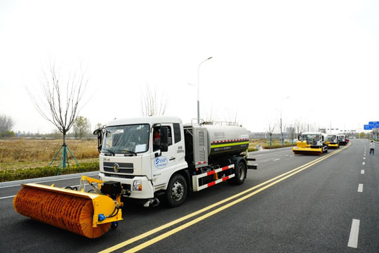 此次演練活動(dòng)在園區(qū)復(fù)旦路和紫金山路現(xiàn)場展開,模擬宿遷地區(qū)寒潮大雪天氣下的道路掃雪除冰應(yīng)急處置。隨著現(xiàn)場指揮一聲令下,演練正式拉開帷幕。所有人員及各類掃雪除冰設(shè)備迅速抵達(dá)指定位置,嚴(yán)格按照“雪前準(zhǔn)備、預(yù)警發(fā)布、應(yīng)急啟動(dòng)”的流程展開作業(yè)。演練以機(jī)械除雪為主,人工清理為輔,多臺撒布機(jī)、雪滾車、雪鏟車等專業(yè)設(shè)備輪番上陣,在模擬的冰雪場景中高效進(jìn)行清雪和除冰作業(yè),全面檢驗(yàn)了應(yīng)急預(yù)案的科學(xué)性和實(shí)操性。